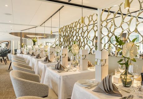 - Panorama-Restaurant: Im eleganten Panorama-Restaurant können alle Passagiere gleichzeitig speisen und eine Auswahl an internationalen und regionalen Gerichten genießen. Die Küche legt Wert auf frische Zutaten und lokale Spezialitäten, um den Gästen ein unvergessliches kulinarisches Erlebnis zu bieten.